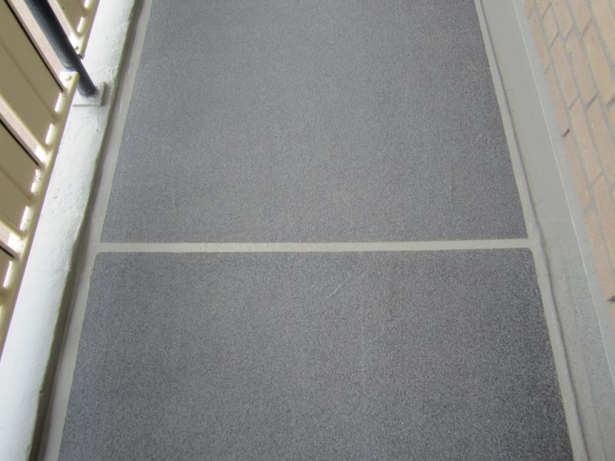 Galerijrenovatie met het Triflex BFS systeem. Duurzaam beschermen en antislip maken van de galerijen was hier aan de orde. De galerijen van deze VvE zagen er triest uit. Nog maar een paar jaar geleden waren deze aangepakt maar de firma die dit had uitgevoerd was niet de deskundige firma die men had verwacht. Over de dilataties had men een strook dakbedekking aangebracht en de antislip coating kwam op enkele galerijen weer los van de ondergrond. Onze oplossing met het duurzame Triflex systeem was voor de VvE precies wat ze zochten. Met het Triflex systeem is snelle applicatie mogelijk waardoor er weinig overlast is tijdens de werkzaamheden en geen loopvoorzieningen noodzakelijk zijn. Niet alleen het vloerveld maar ook de dilataties werden met het Triflex systeem afgedicht. Het geheel ziet er weer prachtig uit want ook het schilderwerk, door onze afdeling Multi Protect Schilderwerken, is vernieuwd. De galerijen kunnen nu echt weer jaren mee.
